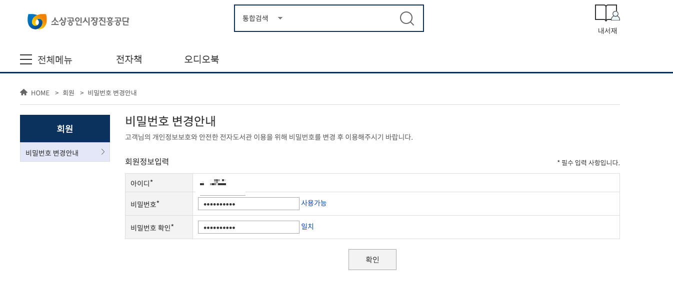 전자도서관 신청후 다시 비밀 번호 입력하라는 페이지가 나오는 이것은 전자도서관을 이용할때 필요한 별도 비밀번호이니 분실 하지 않으시길 당부드립니다.