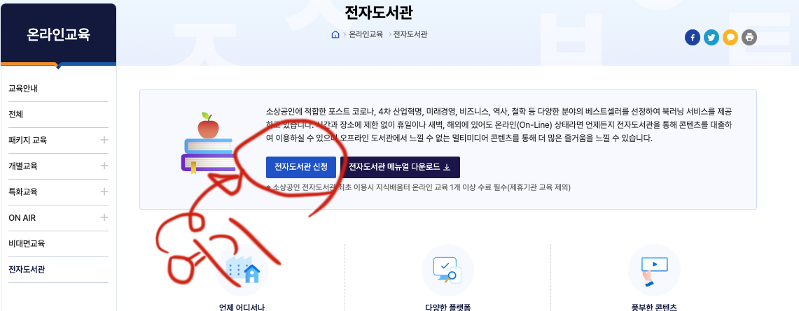 전자도서관 신청하기기를 클릭하시면 됩니다