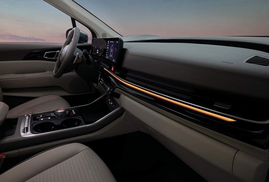 2024 기아 카니발의 실내는 현대적이고 넓으며 고급 소재와 최고 수준의 마감재로 마감되었습니다. 고급 트림은 고급스 려운 가죽 커버와 2열 레그 레스트와 같은 고급 편의 사양으로 고급스러움의 경계를 넘나듭니다.